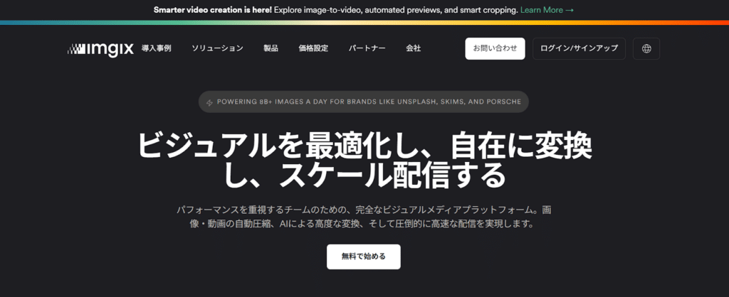 Imgixは、自動パラメータ機能やAIを活用した画像・動画最適化プラットフォームです。