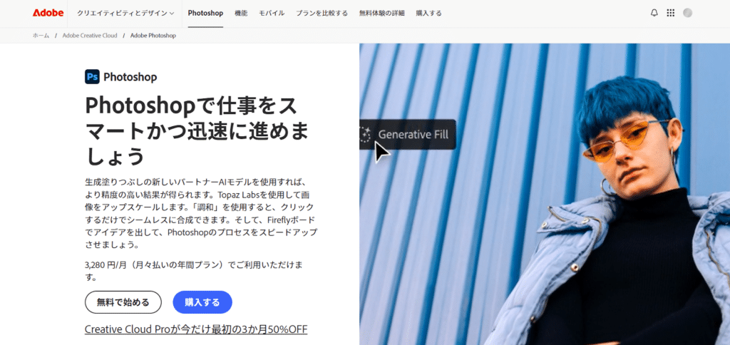 Adobe Photoshopは、長年にわたりプロの制作現場で利用されてきた画像編集ソフトです。