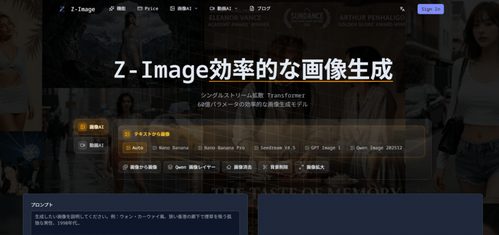 プロンプトを補強するTag Boosterや、雰囲気やストーリー性を高めるMood Enhancerといった自動プロンプト機能が特徴的です。自動プロンプト機能により、専門的な用語を使わずに、アイデアを入力するだけで高品質な画像を生成できます。
